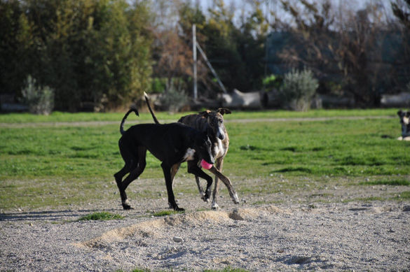 Sie liebt die Gesellschaft von anderen Hunden, ein Zweithund wäre daher schön. Sie spielt und rennt sehr gerne, genießt den regelmäßig Freilauf (im eingezäunten Gelände). Sie geht sehr gut an der Leine. Galgos bringen Rassebedingt Jagdtrieb mit.