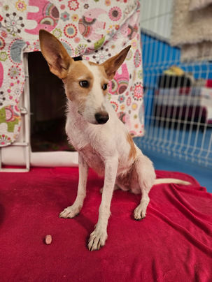 Unsere süße Sky mit den Pommestütenohren lebt nun schon über ein Jahr im Refugio in Zaragoza und wartet darauf, endlich von ihren Menschen entdeckt zu werden. Bereits im September 2024 haben wir sie zusammen mit zwei weiteren Podencos aus einer Perrera in Valencia gerettet.